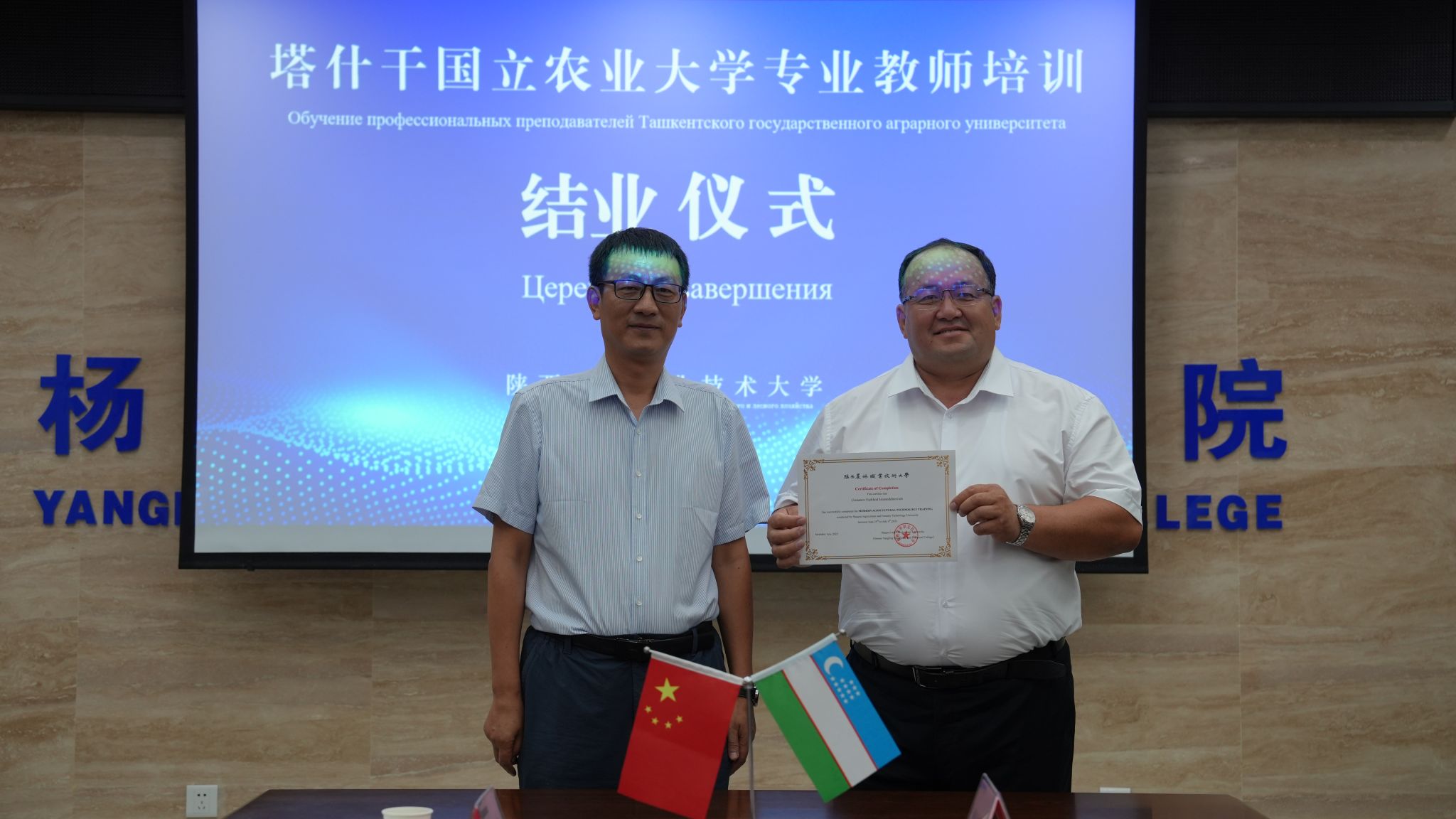 7月4日,乌兹别克斯坦塔什干国立农业大学14名教师代表在浦京圆满完成现代农业技术培训。副校长蒋平江为参训教师颁发结业证书。