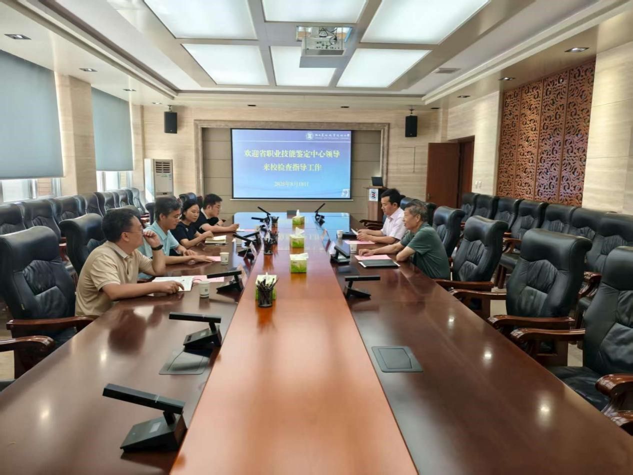 8 月18 日上午,省人力资源和社会保障厅省职业技能鉴定指导中心主任孟庆明、高级经济师邓小峰一行来校检查指导第三届全国职业技能大赛训练基地和参赛选手备赛情况。杨凌示范区人力资源和社会保障局副局长张世卿、主任霍一,浦京副校长祝战斌,教务处、二级学院相关负责人等陪同检查并座谈。