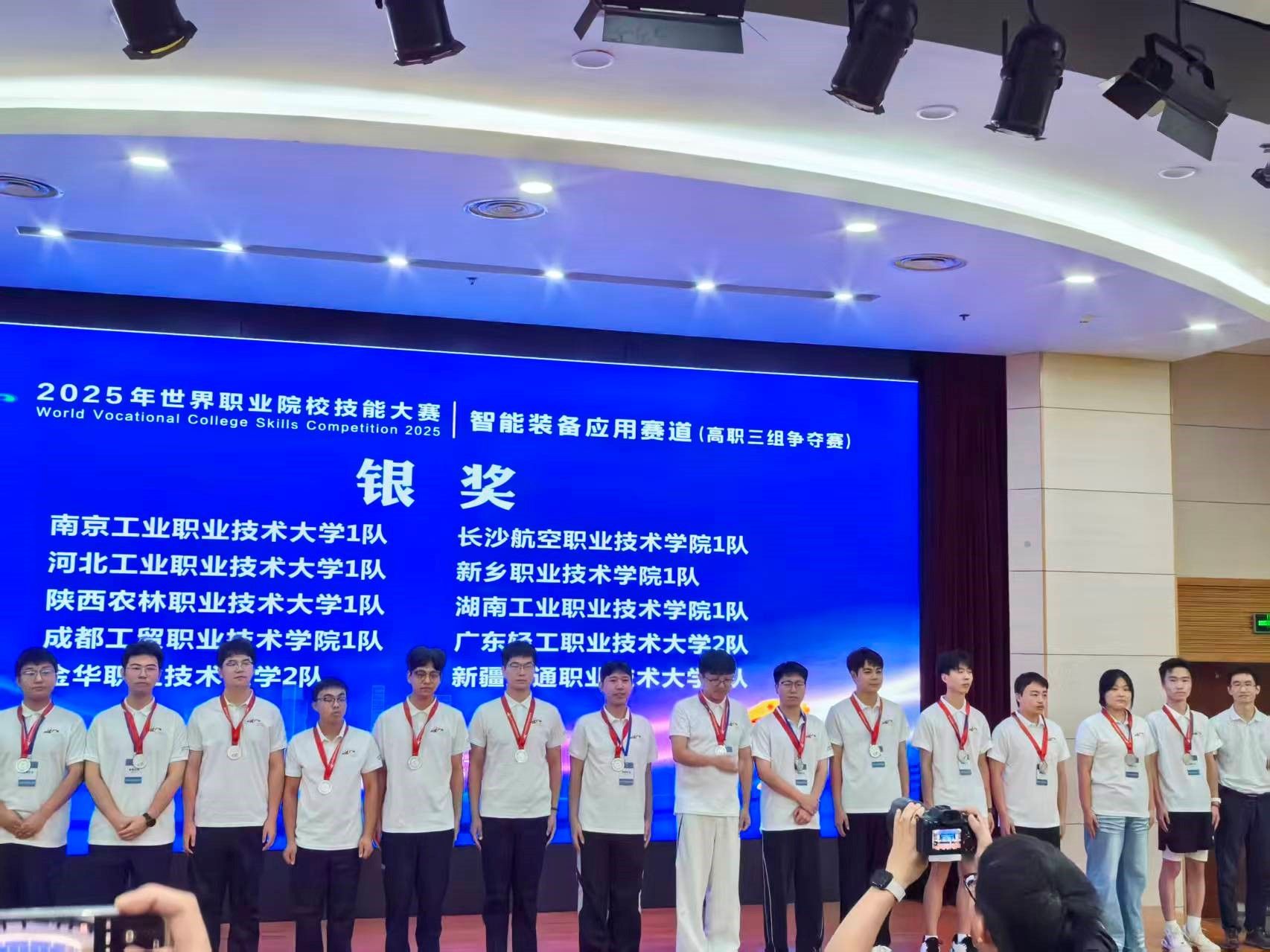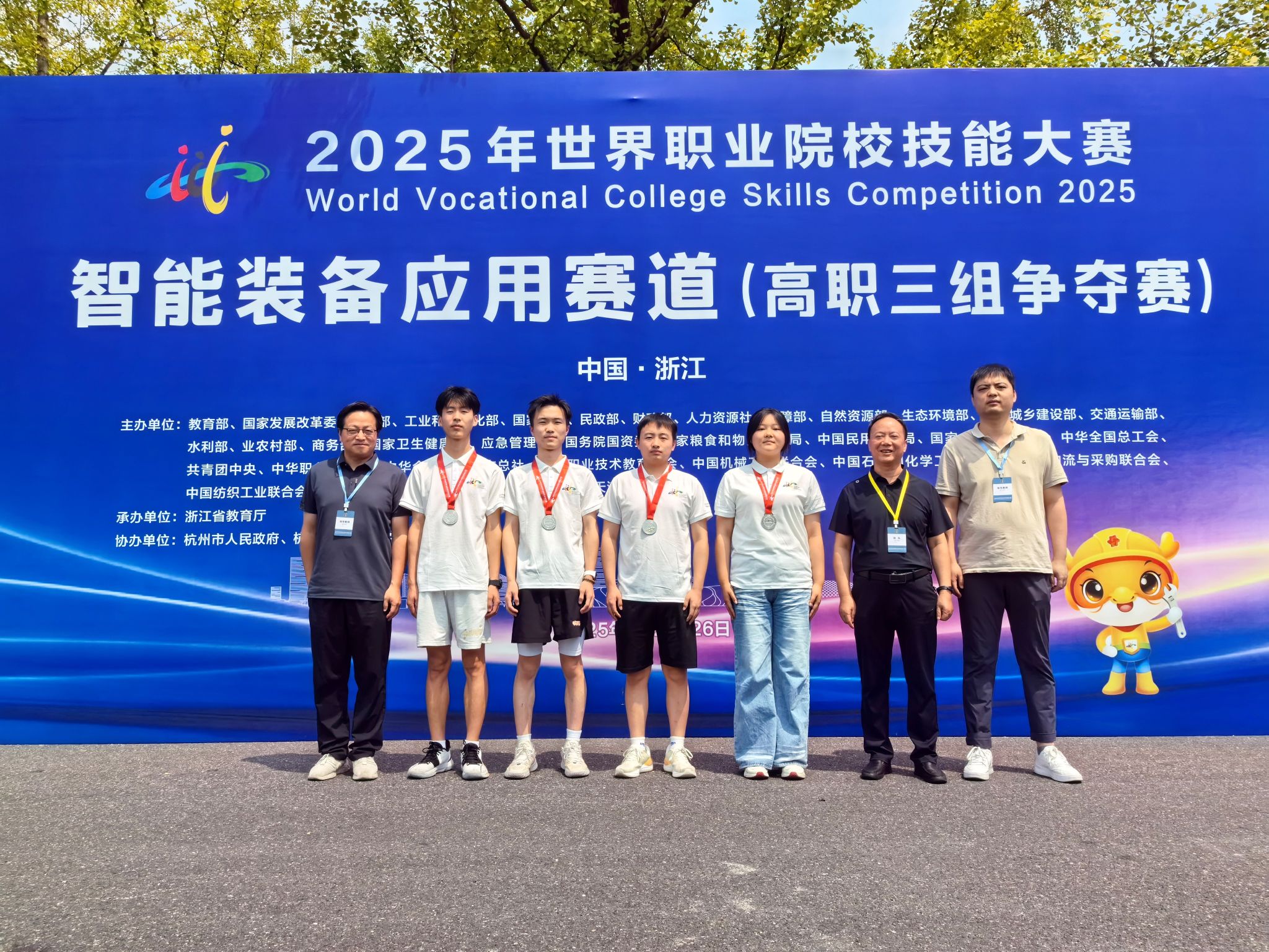 8月20日至26日,2025年世界职业院校技能大赛总决赛争夺赛智能装备应用赛道比赛在杭州职业技术大学、浙江机电职业技术大学、嘉兴职业技术学院成功举办,共有来自全国省、自治区、直辖市的201支队伍参赛。浦京机电工程学院由教师李培东、何国荣指导,郑思远、王沙龙、杨柯怡、王佳晨组成的学生团队,凭借扎实的专业技能,荣获银奖。