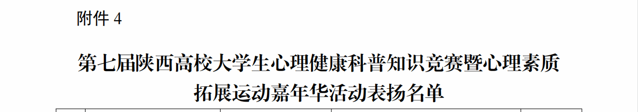 在2025年陕西高校学生心理健康教育指导典型经验评选中,《“文心乐树”:传统文化艺术疗愈助力高校学生心理健康教育实践经验》获一等奖,《解构·重组·进化——“5E·四维联动”心理育人体系赋能大学生心理健康的实践经验》获二等奖。在2025年陕西高校学生心理健康教育指导典型案例评选中,《向阳而生,匠心筑梦——积极心理学视域下“三全五阶”心理育人模式创新与实践》获三等奖。在第六届陕西高校校园心理情景剧活动中,参赛作品《逆风》获三等奖;学生在第七届陕西高校大学生心理健康科普知识竞赛活动中获优秀奖。