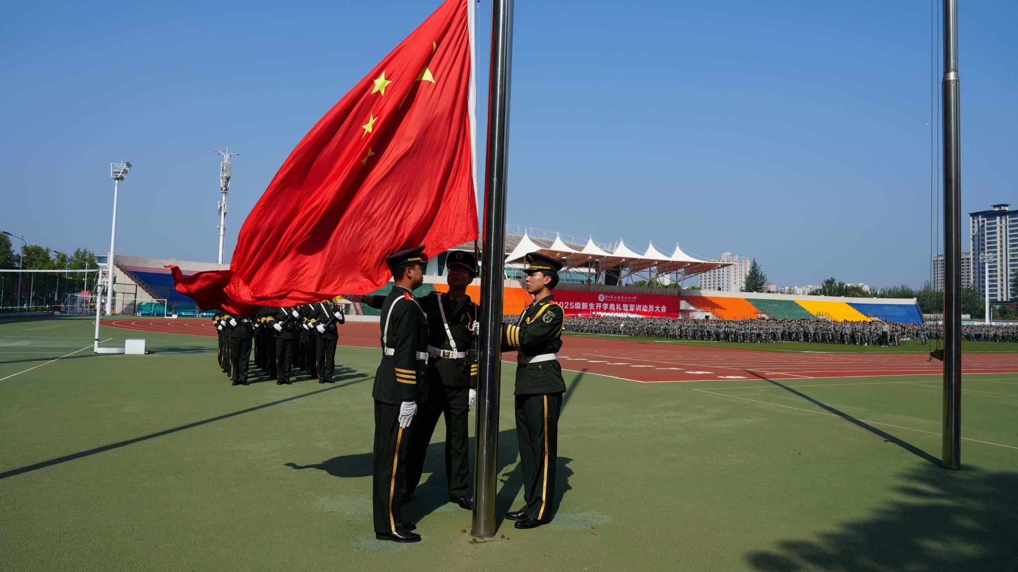 9月14日上午10时,学校2025级新生开学典礼暨军训动员大会在雄壮的国歌声中拉开序幕。党委书记韩明军向军训团授旗,校长仲伟周作军训动员讲话,本次军训团团长彭玉康讲话。大会由副校长祝战斌主持。