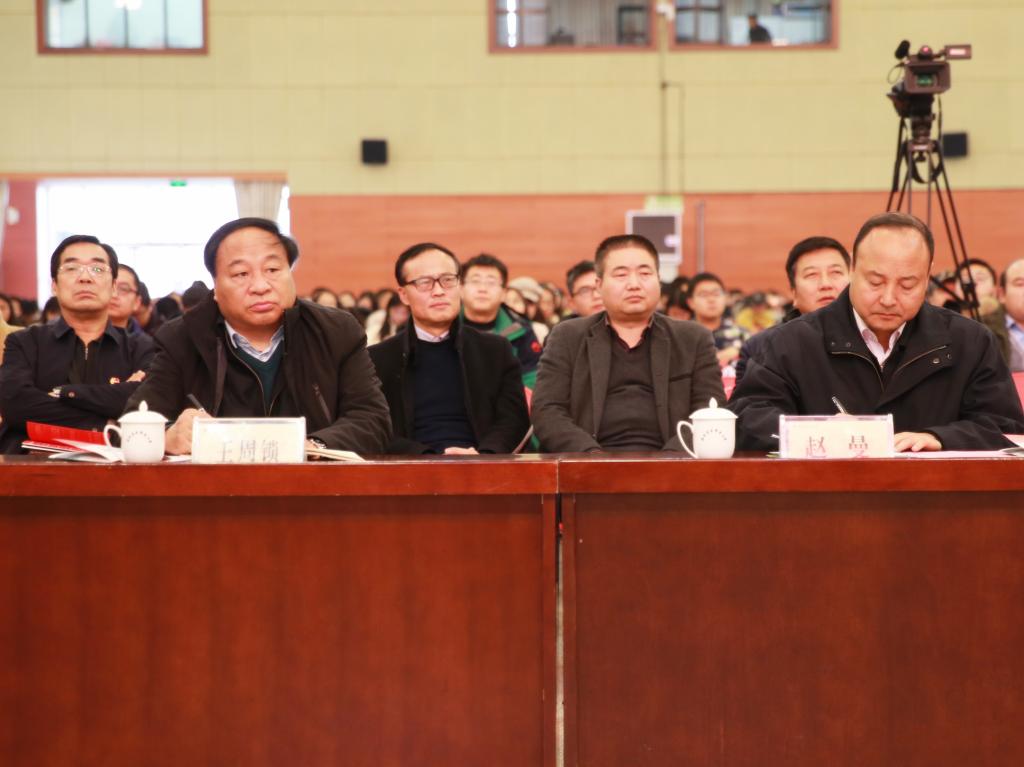 我院党委书记赵曼,党委副书记、院长王周锁,党委副书记任得元,副院长张永良纪委书记刘粉莲,处科级干部,思政课部教师,各分院教师代表、学生代表400余人共同聆听了报告会。