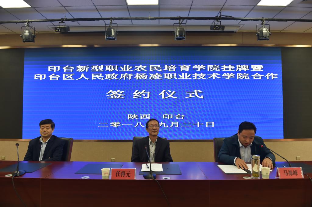 9月20日,我院铜川印台区新型职业农民培育学院挂牌暨校地合作协议签约仪式在铜川印台区职业技术学校举行。学院党委副书记任得元出席签约仪式,并代表学院向印台区职业技术学校授牌。签约仪式由印台区委副书记马海峰主持。
