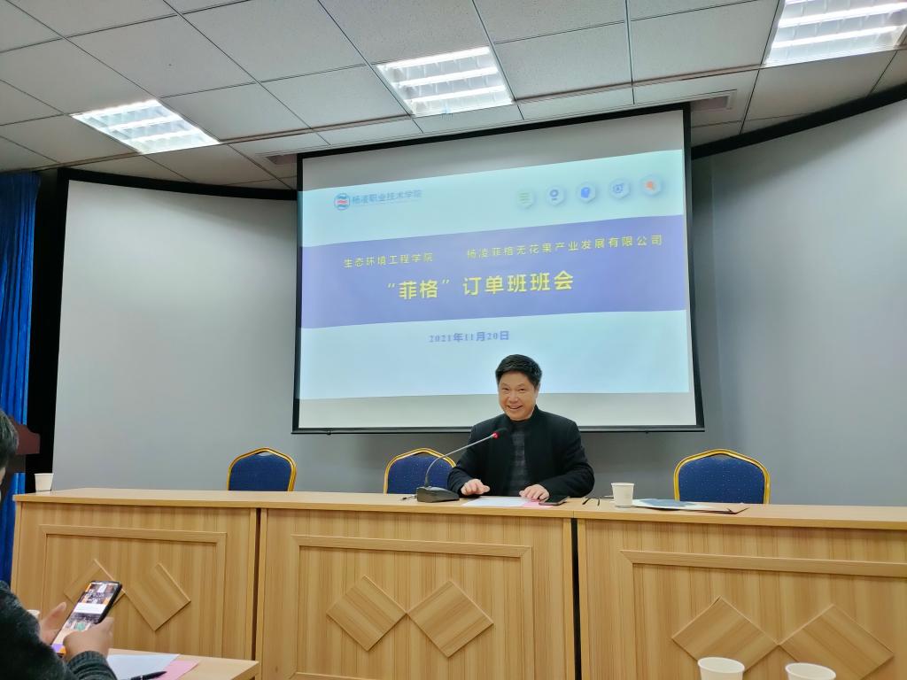 1120日,生态环境工程学院与杨凌菲格无花果产业发展有限公司举行订单班开班暨校企合作签约仪式。杨凌菲格无花果产业发展有限公司总裁刘琳文、无花果产业研发中心主任钱拴提、生态环境工程学院院长王青宁以及部分师生和企业代表参加仪式。仪式由生态环境工程学院党总支书记孙承俊主持。
