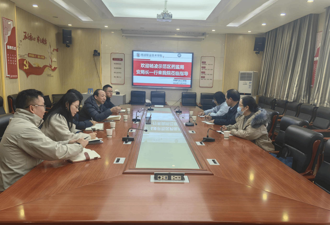 1219日上午,杨凌示范区药监局副局长安兴国一行到药物与化工学院调研交流。药物与化工学院负责人陪同调研。