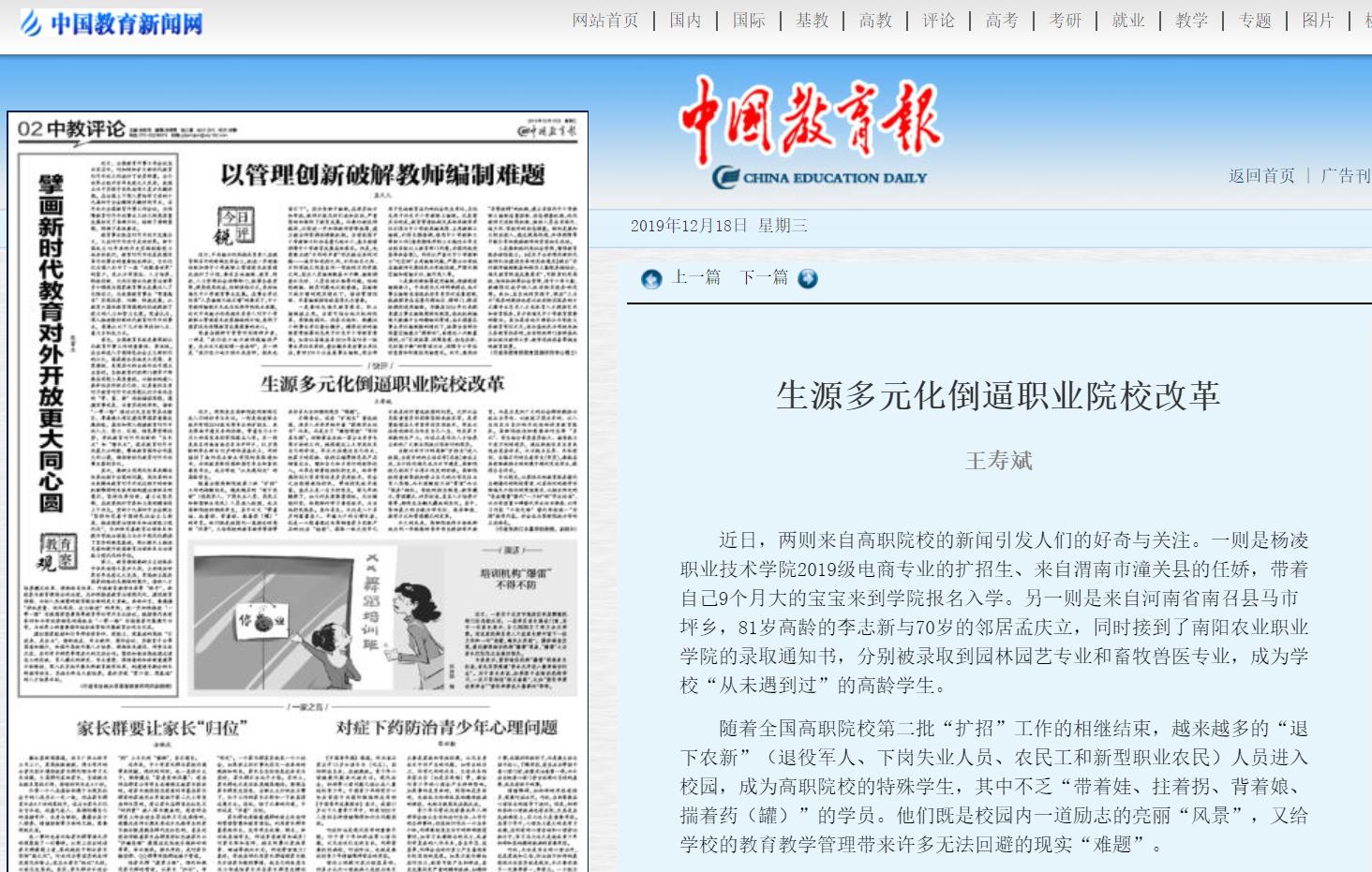 近日,两则来自高职院校的新闻引发人们的好奇与关注。一则是350vip浦京集团官网2019级电商专业的扩招生、来自渭南市潼关县的任娇,带着自己9个月大的宝宝来到学院报名入学。另一则是来自河南省南召县马市坪乡,81岁高龄的李志新与70岁的邻居孟庆立,同时接到了南阳农业职业学院的录取通知书,分别被录取到园林园艺专业和畜牧兽医专业,成为学校“从未遇到过”的高龄学生。