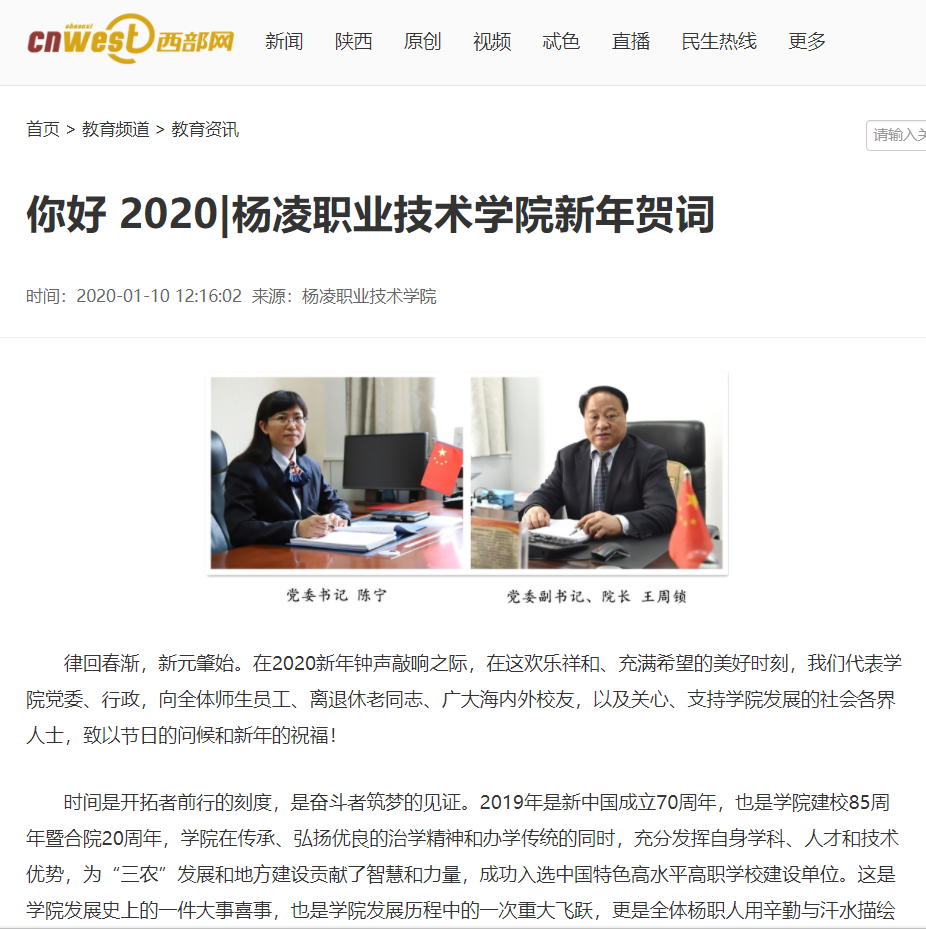 征程万里风正劲,重任千钧再奋蹄。2020年是学院“十三五”规划收官之年,也是中国特色高水平高职院校建设启动之年。让我们始终牢记“经国本,解民生,尚科学”的初心,自觉践行“为党育人、为国育才”的使命,在新的一年里,围绕实施“六新”发展方略,紧握手中的“接力棒”,以昂扬的斗志、创新的精神、务实的作风、奋斗的姿态,坚定不移地朝着既定奋斗目标前进,更好地肩负起强农兴农的责任担当。