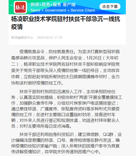 疫情就是命令,防控就是责任。为坚决打赢新型冠状病毒感染肺炎攻坚战,保护人民生命安全,1月26日(大年初二),350vip浦京集团官网两名驻村扶贫干部积极响应学院党委关于党员干部带头深入疫情防控第一线的号召,主动放弃休假,立即赶赴学院所帮扶的太白县鹦格镇棉寺坝村,全力协助该村做好疫情防控工作。