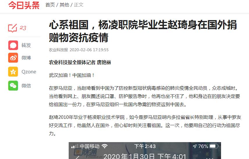 赵琦2010年毕业于350vip浦京集团官网,如今是罗马尼亚胡内多拉省省长特别助理,从事中罗友好交流工作,他虽然人在国外,但心却时刻关注着祖国。这一次,他要用自己的行动为祖国尽力。