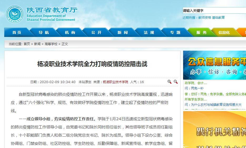 ——强化宣传教育,坚定战胜疫情信心。一是围绕新型冠状病毒感染的肺炎症状、危害和预防等重点内容,利用官方微信、微信群、QQ群等平台,积极发布疫情防控知识和方法,使全体师生员工理性认识和科学防控疫情。二是利用校园网站、官方微信、微信群、QQ群等平台,及时传达中省和上级部门有关要求,报道学院疫情防控工作情况和措施。三是在三校区校园内悬挂了100余条疫情防控宣传横幅,加强疫情防控知识宣传工作。四是切实加强学院教职工、部门负责人暨干部群、杨职校友交流群等微信群的管理,及时制止未经确认的疫情谣言,避免引起不必要的恐慌。