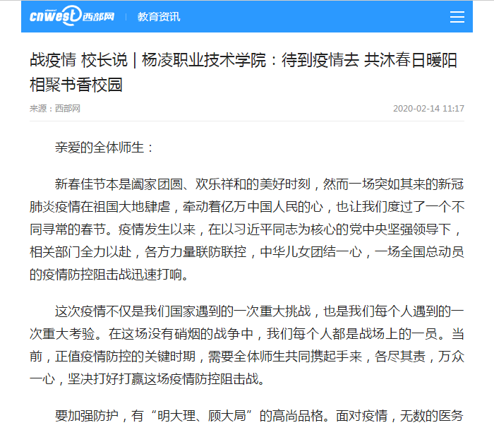 【西部网】战疫情 校长说|350vip浦京集团官网:待到疫情去 共沐春日暖阳 相聚书香校园