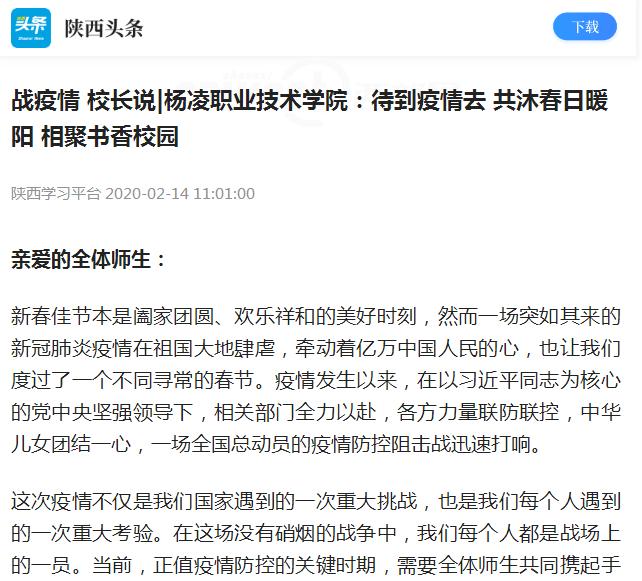 【陕西头条】战疫情 校长说|350vip浦京集团官网:待到疫情去 共沐春日暖阳 相聚书香校园