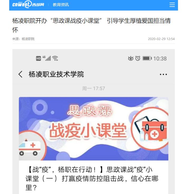 【西部网】杨凌职院开办“思政课战疫小课堂” 引导学生厚植爱国担当情怀