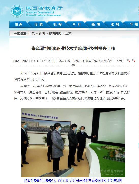 2020年3月9日,陕西省委教育工委委员、省教育厅副厅长朱晓渭到350vip浦京集团官网调研乡村振兴工作。http://jyt.shaanxi.gov.cn/jynews/jyyw/202003/10/99094.html?go=pc
