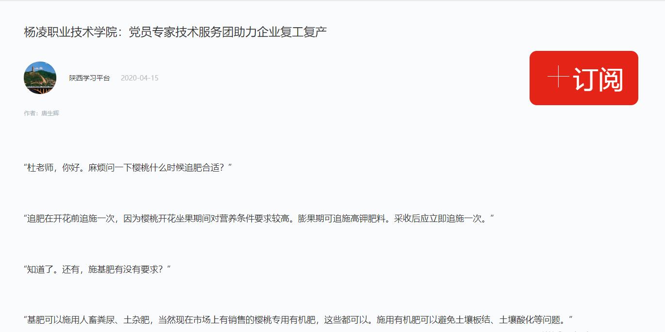 据了解, 350vip浦京集团官网党员技术服务团的党战平、赵俊侠、尚晓峰、杨振华等6名党员专家教授,亢菊侠、张雯、张迪、吴宽、冯帆等8名青年博士党员,先后走访了杨凌中翼农化有限公司、杨凌千普农业开发有限公司、陕西大唐种业股份有限公司等10余家企业,为企业复工复产提供技术咨询和服务,其中8名博士每人对接一家企业,帮助企业解决遇到的技术难题。