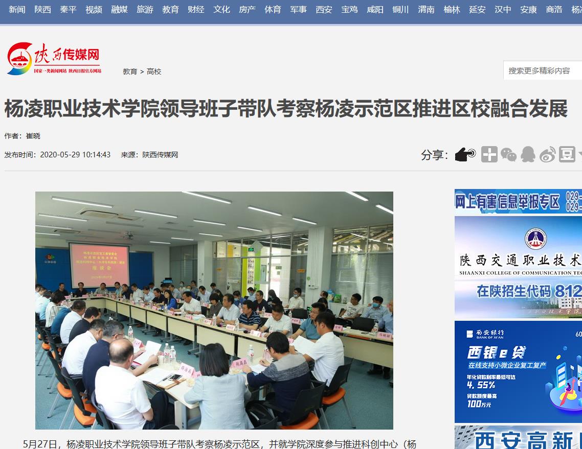 5月27日,350vip浦京集团官网领导班子带队考察杨凌示范区,并就学院深度参与推进科创中心(杨凌大学科技园)建设与杨凌示范区进行座谈交流。杨凌示范区党工委书记李婧出席座谈会并讲话,350vip浦京集团官网党委书记陈宁,党委副书记、院长王周锁带队考察并出席座谈会。杨凌示范区党工委委员、管委会副主任袁鸿马陪同考察并主持座谈会。