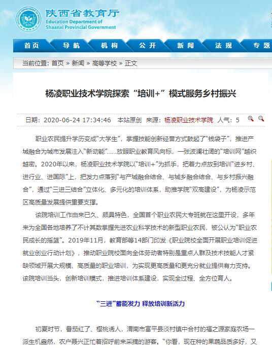 如今,一批学员已经获得杨凌示范区农民技术职称证书,成为活跃在田间地头的“土专家”。在陕西全省各地农村,从种植业到养殖业,从农产品加工到乡村休闲游,到处都能看到杨凌职院培养的新生代职业农民的身影,他们已经成为活跃在田间地头的“永久牌”土专家、乡村振兴的主力军。