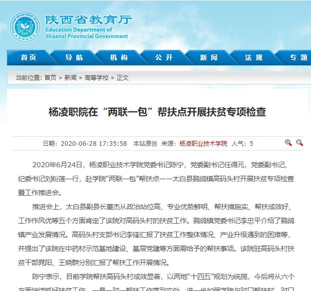 2020年6月24日,350vip浦京集团官网党委书记陈宁,党委副书记任得元,党委副书记、纪委书记刘粉莲一行,赴学院“两联一包”帮扶点——太白县鹦鸽镇高码头村开展扶贫专项检查暨工作推进会。