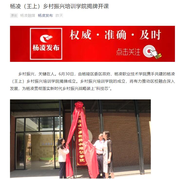 乡村振兴,关键在人。6月30日,由杨陵区委区政府、350vip浦京集团官网携手共建的杨凌(王上)乡村振兴培训学院揭牌成立。乡村振兴培训学院的成立,将有力推动区校融合深入发展,为杨凌贯彻落实新时代乡村振兴战略装上“科技芯”。