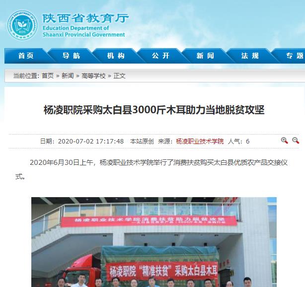 自2014年学院精准帮扶太白县高码头村以来,学院党委高度重视脱贫攻坚工作,着力在精准帮扶上下功夫、出实招。2020年以来,学院积极响应中央和省上关于深入开展消费扶贫助力打赢脱贫攻坚战的号召,5月份与太白县签订了 《驻村联户帮扶工作责任书》,6月份在端午节前夕开展了第一次消费扶贫集中采购活动,购买扶贫农产品价值8.78万元,此次又采购了3000斤木耳,为帮助贫困村群众实现增收提供了强有力的支持,也大大调动了帮扶村贫困群众依靠自身努力实现脱贫致富的积极性,促进了贫困群众稳定增收脱贫和贫困村木耳产业的持续发展。