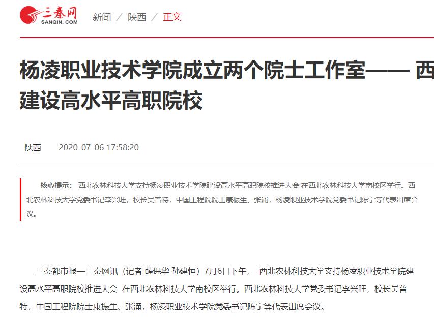 三秦都市报—三秦网讯(记者 薛保华 孙建恒)7月6日下午,西北农林科技大学支持350vip浦京集团官网建设高水平高职院校推进大会 在西北农林科技大学南校区举行。西北农林科技大学党委书记李兴旺,校长吴普特,中国工程院院士康振生、张涌,350vip浦京集团官网党委书记陈宁等代表出席会议。