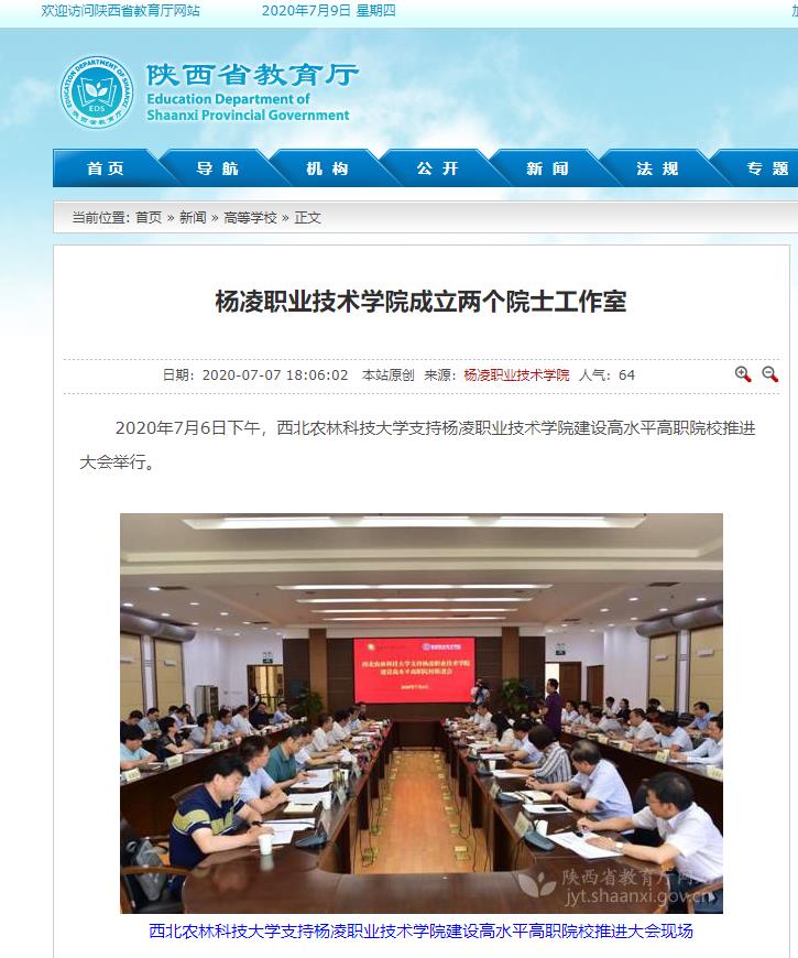 2020年7月6日下午,西北农林科技大学支持350vip浦京集团官网建设高水平高职院校推进大会举行。