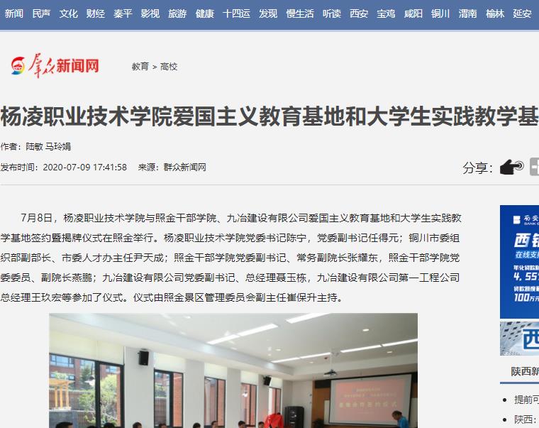 7月8日,350vip浦京集团官网与照金干部学院、九冶建设有限公司爱国主义教育基地和大学生实践教学基地签约暨揭牌仪式在照金举行。350vip浦京集团官网党委书记陈宁,党委副书记任得元;铜川市委组织部副部长、市委人才办主任尹天成;照金干部学院党委副书记、常务副院长张耀东,照金干部学院党委委员、副院长燕鹏;九冶建设有限公司党委副书记、总经理聂玉栋,九冶建设有限公司第一工程公司总经理王玖宏等参加了仪式。仪式由照金景区管理委员会副主任崔保升主持。