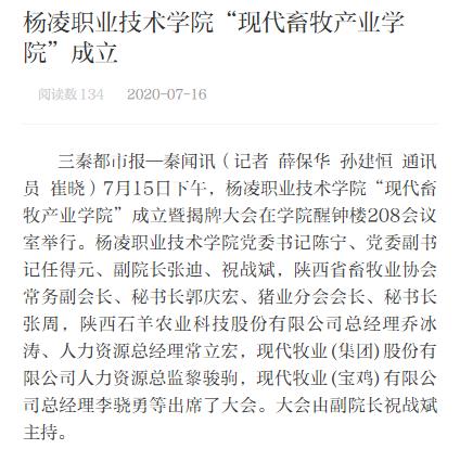 三秦都市报—秦闻讯(记者 薛保华 孙建恒 通讯员 崔晓)7月15日下午,350vip浦京集团官网“现代畜牧产业学院”成立暨揭牌大会在学院醒钟楼208会议室举行。350vip浦京集团官网党委书记陈宁、党委副书记任得元、副院长张迪、祝战斌,陕西省畜牧业协会常务副会长、秘书长郭庆宏、猪业分会会长、秘书长张周,陕西石羊农业科技股份有限公司总经理乔冰涛、人力资源总经理常立宏,现代牧业(集团)股份有限公司人力资源总监黎骏驹,现代牧业(宝鸡)有限公司总经理李骁勇等出席了大会。大会由副院长祝战斌主持。
