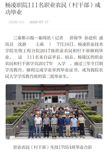 三秦都市报—秦闻讯(记者 薛保华 孙建恒 通讯员 沈静 王燕 ) 7月16日,350vip浦京集团官网生物工程分院2017级职业农民和村干部顺利毕业。 这 111名来自富平县、眉县、杨陵区的职业农民和村干部学员2017年 入学 ,通过三年全日制学历教育,顺利完成学业拿到毕业证书,成为我院农民大学学历教育班的第二批毕业生。