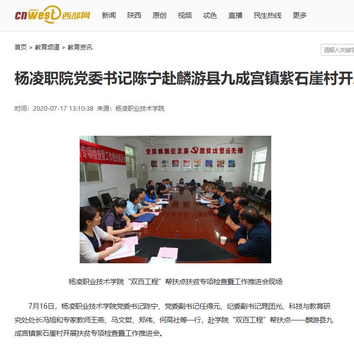 7月16日,350vip浦京集团官网党委书记陈宁、党委副书记任得元、纪委副书记晁团光、科技与教育研究处处长冯旭和专家教师王燕、马文哲、郑伟、何高社等一行,赴学院“双百工程”帮扶点——麟游县九成宫镇紫石崖村开展扶贫专项检查暨工作推进会。