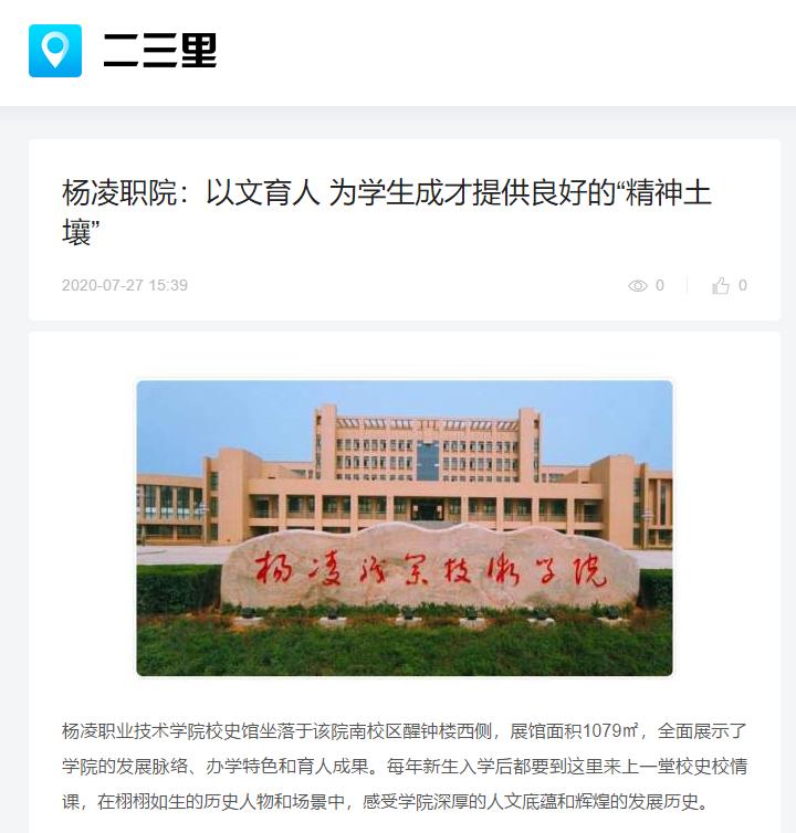 【二三里】杨凌职院:以文育人 为学生成才提供良好的“精神土壤”
