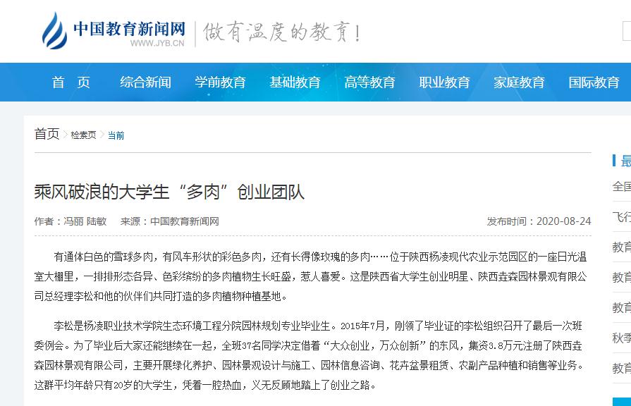 在创业这条大道上,这些青年风雨同舟,用智慧与汗水浇灌着梦想之花。目前公司在杨凌和上海已有8个大棚,100多个品种、34万株多肉植物,主营业务也从多肉植物的培育、研发、批发和销售,扩展到了多肉植物景观设计、家庭园艺设计、多肉植物花艺和多肉植物主题婚庆。