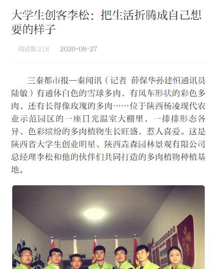 在创业这条大道上,这些青年风雨同舟,用智慧与汗水浇灌着梦想之花。目前公司在杨凌和上海已有8个大棚,100多个品种、34万株多肉植物,主营业务也从多肉植物的培育、研发、批发和销售,扩展到了多肉植物景观设计、家庭园艺设计、多肉植物花艺和多肉植物主题婚庆。
