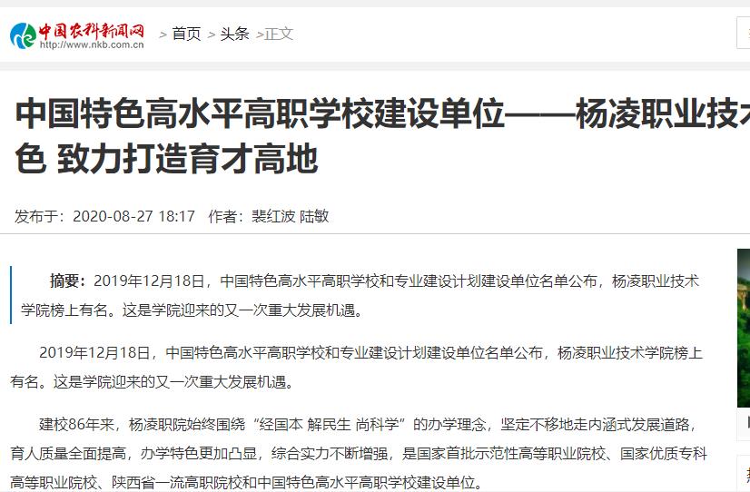 2019年12月18日,中国特色高水平高职学校和专业建设计划建设单位名单公布,350vip浦京集团官网(以下简称“杨凌职院”)榜上有名。这是学院迎来的又一次重大发展机遇。