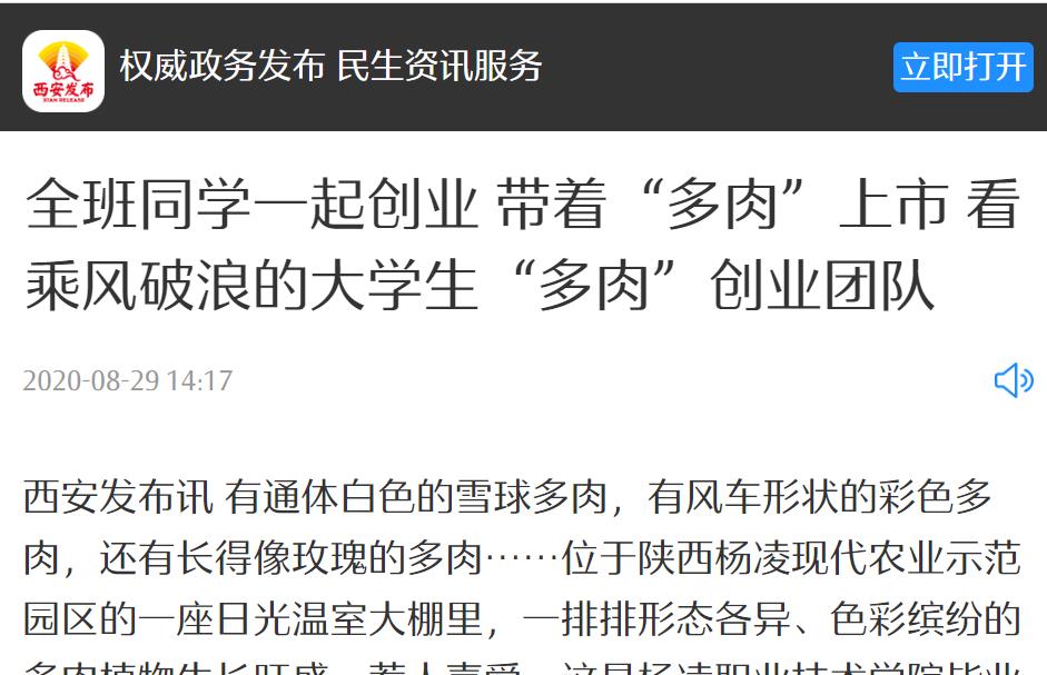西安发布讯 有通体白色的雪球多肉,有风车形状的彩色多肉,还有长得像玫瑰的多肉……位于陕西杨凌现代农业示范园区的一座日光温室大棚里,一排排形态各异、色彩缤纷的多肉植物生长旺盛,惹人喜爱。这是350vip浦京集团官网毕业生、陕西省大学生创业明星、陕西垚森园林景观有限公司总经理李松和他的伙伴们共同打造的多肉植物种植基地。
