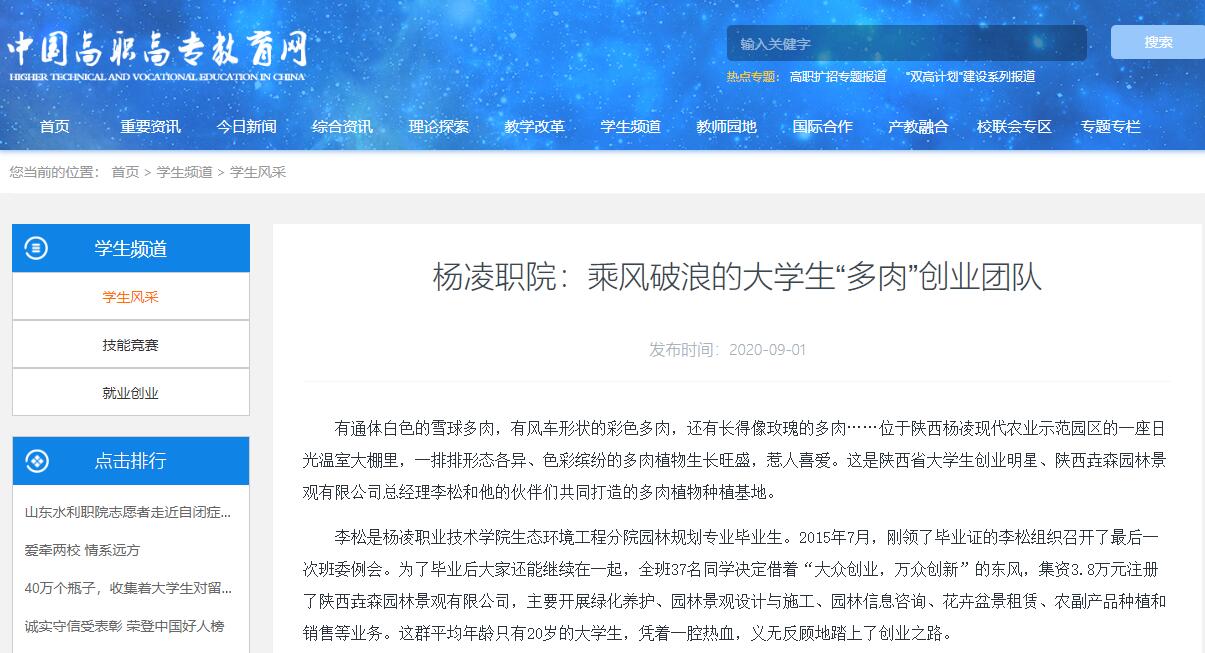 在创业这条大道上,这些青年风雨同舟,用智慧与汗水浇灌着梦想之花。目前公司在杨凌和上海已有8个大棚,100多个品种、34万株多肉植物,主营业务也从多肉植物的培育、研发、批发和销售,扩展到了多肉植物景观设计、家庭园艺设计、多肉植物花艺和多肉植物主题婚庆。