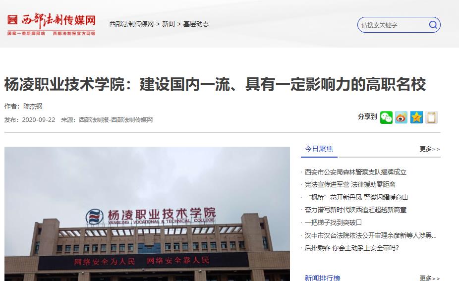 目前,杨凌职院共有专任教师706人,其中“双师”素质专任教师499人;国家级教学团队1个,省级教学团队11个;二级教授2人,三级教授8人,国家级教学名师1人,全国优秀教师5人,全国师德标兵1人;陕西“特支计划”教学名师2人,省级教学名师17人、师德标兵2人,陕西青年杰出人才支持计划1人,行业教学名师32人。学院主持国家级职业教育专业教学资源库3项,参与23项;以第一完成单位获得国家级教学成果奖二等奖6项,以第一完成单位获得省级教学成果特等奖2项、一等奖8项、二等奖13项,实现了教学质与量的同步飞跃。(陈杰钢)