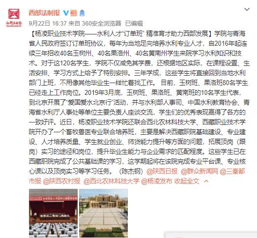 学院与青海省人民政府签订订单班协议,每年为当地足向培养水利专业人才,自2016年起连续三年招收40名玉树州、40名果洛州、40名黄南州学生来院学习水利知识和技术。对于这120名学生,学院不仅减免其学费,还根据地区实际,在课程设置、生活安排、学习方式上给予了特别安排。三年学成,这些学生将直接回到当地水利部门上班,不用像其他毕业生一样忙着找工作。 目前,玉树班、果洛班80名学生已经走上工作岗位。2019年3月底,玉树班、果洛班、黄南班的10名学生代表,到北京开展了“爱国爱水北京行”活动,并与水利部人事司、中国水利教育协会、青海省水利厅人事处等单位主要负责人座谈交流,学生们的优秀表现赢得了各方的一致好评。近日,350vip浦京集团官网还联合西北农林科技大学、西藏职业技术学院开办了一个畜牧兽医专业联合培养班,主要是解决西藏职院基础建设、专业建设、人才培养质量、学生就业创业、师贷能力提升等方面的问题,拓展顶岗(跟岗)实习的途径和岗位,提升毕业生能力与企业需求的匹配程度。这些学生已在西藏职院完成了公共基础课的学习,这学期起将在该院完成专业平台课、专业核心课以及顶岗实习等学习任务。(陈杰钢)