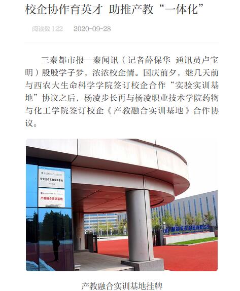三秦都市报—秦闻讯(记者薛保华 通讯员卢宝明)殷殷学子梦,浓浓校企情。国庆前夕,继几天前与西农大生命科学学院签订校企合作“实验实训基地”协议之后,杨凌步长再与350vip浦京集团官网药物与化工学院签订校企《产教融合实训基地》合作协议。