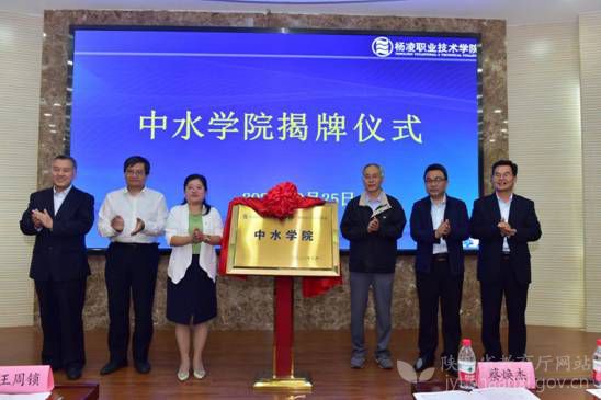 会上宣布了“中水学院”成立决定,“中水学院”领导机构为院长张迪、常务副院长郝红科、书记刘儒博、副院长周孝武、王国强、张卫宁、郭旭新。中水学院为水利工程专业群“政行企校”四方合作发展理事会成立的产业学院,为今后的水利工程分院、海外分院、企业学院等培养高水平技术技能人才,为企业提供高水平技术技能服务奠定基础。随后,政、行、企、校、代表共同为中水学院揭牌,会议签订了校政、校企合作协议,为