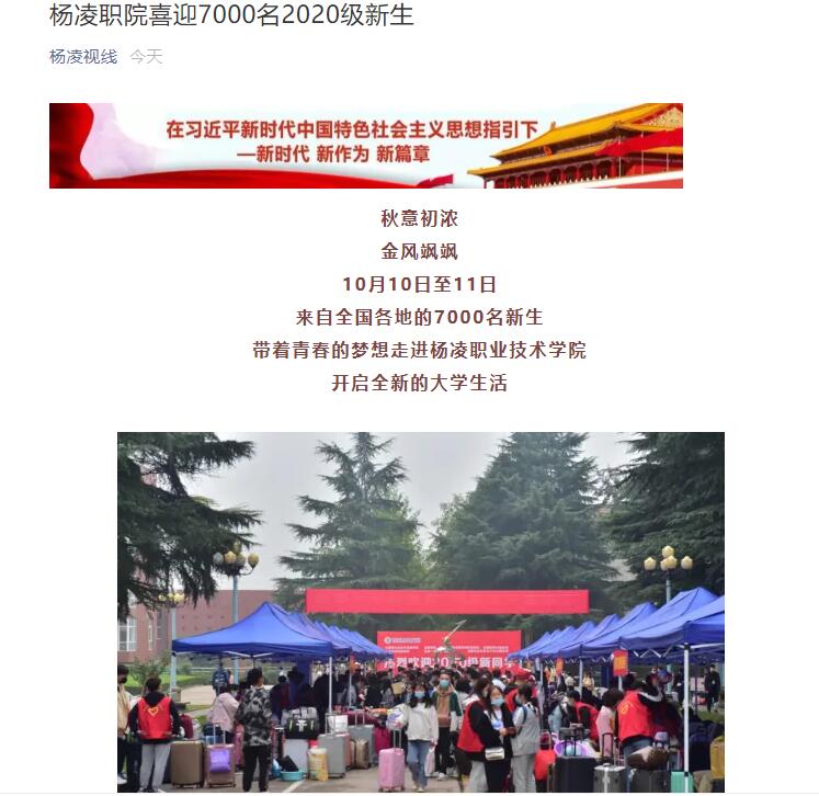 为确保2020级新生顺利报到,连日来,杨凌职院在坚持常态化疫情防控前提下,采取多种措施,切实做好迎接新生准备工作。一是全面实行网上缴费,除已经办理好生源地贷款的新生在缴费点设立的绿色通道刷卡补交学杂费差额外,其余新生全部通过银行代扣、支付宝缴费、微信和支付宝扫码缴费、网上缴费平台缴费等方式缴纳学杂费。二是在火车站、高铁站设立了新生接待处,12辆校车全程运转,学生志愿者引导新生及时乘坐校车,带领新生前往所在校区办理报到手续。三是各二级分院新生接待点有序排列,随时为新生答疑解惑。四是学校有关部门安排专人负责校门口车辆、人流的交通疏导工作,极大地方便了新生报到。五是增加校医院值班医护人员,做好新生的卫生防疫和保障工作。