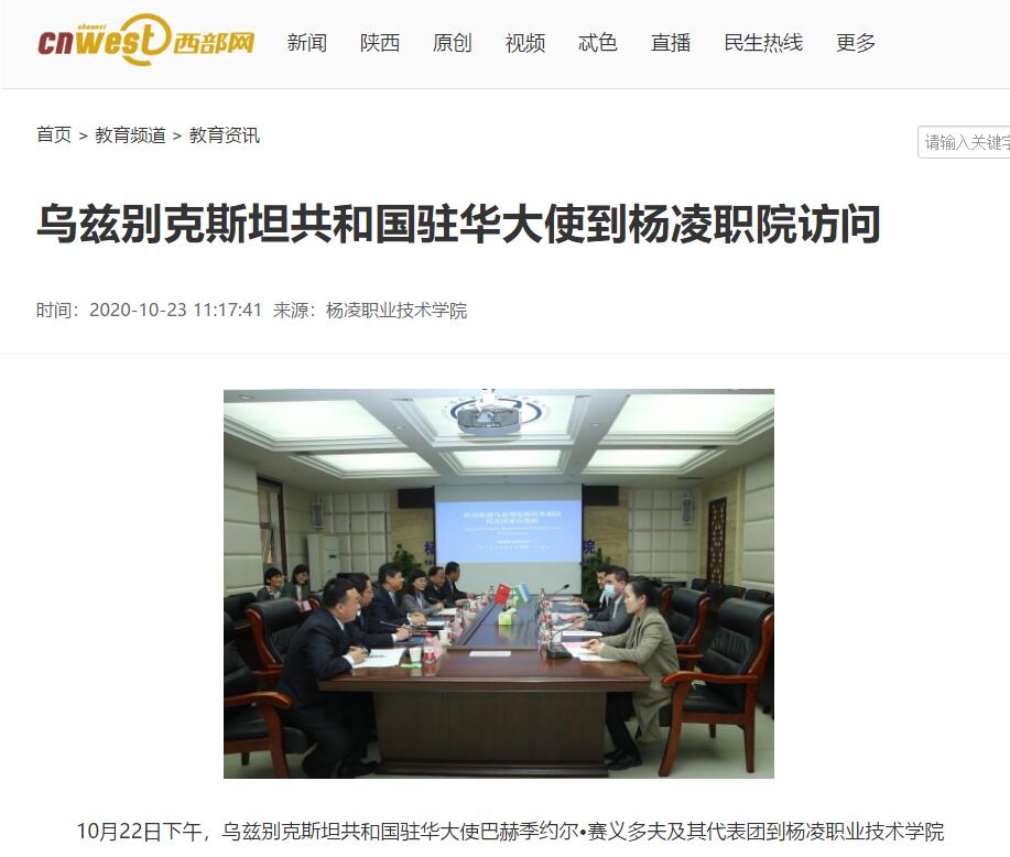 350vip浦京集团官网校长王周锁向大使一行简要介绍了学校的基本情况。他指出,为配合两国政府在乌兹别克斯坦建立现代农业科技园区建设工作,杨凌职院愿意在以下三个方面与乌兹别克斯坦开展合作:一是在园区建立350vip浦京集团官网现代农业技术推广基地,开展干旱与半干旱现代农业技术教育与技术推广,在良种推广、节水灌溉、水土保持等方面提供技术与人才支持。二是选派学校的农业专家和教师在园区开展现场技术指导。三是为乌兹别克斯坦现代农业园区培养现代农业技术人才。同时,学校也愿意与乌兹别克斯坦在多个方面开展文化与教育交流,也欢迎乌兹别克斯坦的相关院校师生来到杨凌职院访问。