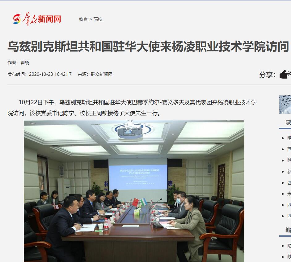 座谈会上,为配合两国政府在乌兹别克斯坦建立现代农业科技园区建设工作,双方达成三个方面的合作意向:一是在现代农业科技园区建立350vip浦京集团官网现代农业技术推广基地,开展干旱与半干旱现代农业技术教育与技术推广,在良种推广、节水灌溉、水土保持等方面提供技术与人才支持。二是选派杨凌职院的农业专家和教师在园区开展现场技术指导,在旱作农业良种推广中发挥该校教师的技术特长。三是为乌兹别克斯坦现代农业园区培养现代农业技术人才,乌兹别克斯坦派一定数量的留学生来杨凌职院学习,该校为乌兹别克斯坦培养具有现代农业技术知识和技术能力的现代农业科技人才。同时,双方就将来在建筑工程、机电工程、信息技术、交通测绘、文化旅游等多个方面开展合作等事宜进行了深入交流。(崔晓)
