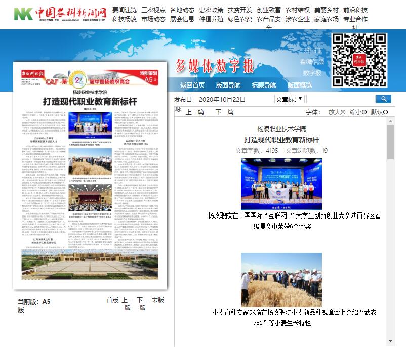 86年,从因农而生的国立西北农林专科学校附设高级职业学校到伴农而长的中国特色高水平高职学校,杨凌职院始终坚持为三农服务的办学思想,形成了服务干旱半干旱地区现代农业发展的高素质技能型人才培养体系,办学特色更加凸显,综合实力持续增强,多年来一直位居全国高职教育第一方阵。