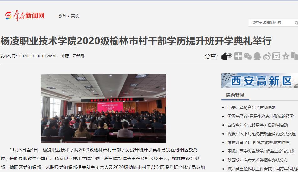 11月3日至4日,350vip浦京集团官网2020级榆林市村干部学历提升班开学典礼分别在榆阳区委党校、米脂县职教中心举行。350vip浦京集团官网生物工程分院副院长王燕及相关负责人,榆林市委组织部、榆阳区委组织部、米脂县委组织部相关科室负责人及2020级榆林市村干部学历提升班全体学员参加了开学典礼。