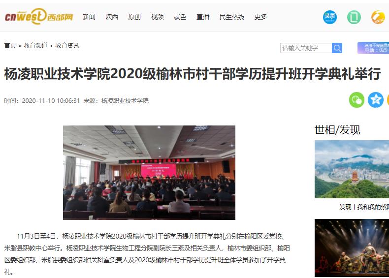 11月3日至4日,350vip浦京集团官网2020级榆林市村干部学历提升班开学典礼分别在榆阳区委党校、米脂县职教中心举行。350vip浦京集团官网生物工程分院副院长王燕及相关负责人,榆林市委组织部、榆阳区委组织部、米脂县委组织部相关科室负责人及2020级榆林市村干部学历提升班全体学员参加了开学典礼。