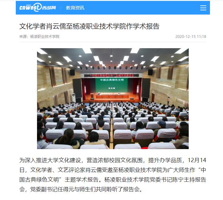 350vip浦京集团官网党委书记陈宁在总结讲话中指出,杨凌职院作为涉农高职院校,不仅肩负着干旱半干旱地区农业高新技术的示范推广任务,也肩负着生态文明建设和生态环境保护的重要使命,相关二级分院要充分发挥自身专业优势和办学特色,为祖国甚至人类的绿色文明做出应有贡献。她要求,各部门、分院要结合此次报告会内容,认真组织全体师生继续学习、深入思考。