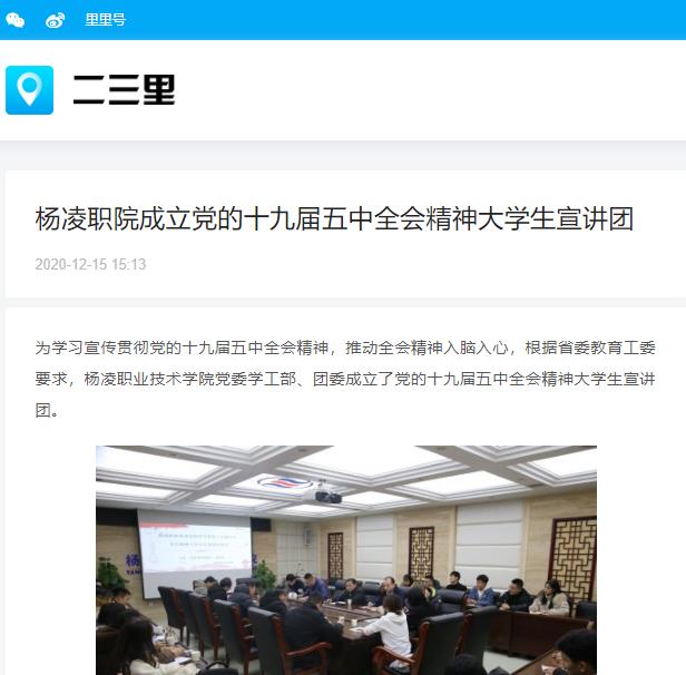 经过层层遴选,大学生宣讲团由11个分院的21名学生组成。本次宣讲重点围绕习近平总书记在党的十九届五中全会上的重要讲话精神,围绕党的十九届五中全会公报和通过的《中共中央关于制定国民经济和社会发展第十四个五年规划和二〇三五年远景目标的建议》,结合着力构建陕西高质量教育体系,结合学校发展改革实际,向学生们着力讲清楚党的十九届五中全会的重大意义,讲清楚决胜全面建成小康社会取得的决定性成就,讲清楚 2035年基本实现社会主义现代化的远景目标和“十四五”时期我国发展的指导方针、主要目标、重点任务、重大举措等方面的内容。