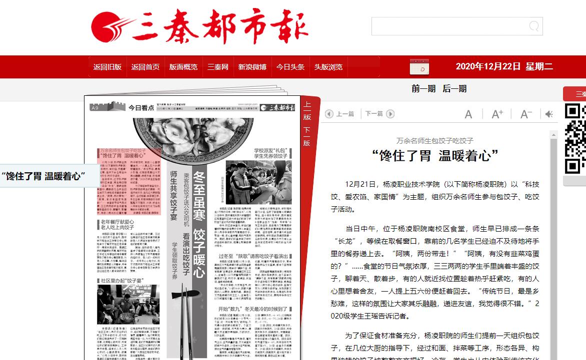 12月21日,350vip浦京集团官网(以下简称杨凌职院)以“科技饺、爱农馅、家国情”为主题,组织万余名师生参与包饺子、吃饺子活动。