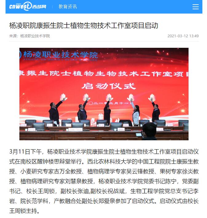 在前期的工作中,康振生院士及其旱区作物逆境生物学国家重点实验室的一批教授与350vip浦京集团官网的老师们进行了充分的交流沟通,对院士工作室怎么建、谁来建,做什么、怎么做等一系列问题进行了充分的交流和研讨,最终确定,建设院士工作室只是一个帽子,杨凌职院整体的发展才是目标。双方围绕育种、园艺、植保、食品安全四个方向,组建了作物遗传改良和品种选育、园艺作物栽培与工厂化生产、作物病虫害绿色防控、食品安全检测四个团队。下一步,四个团队的老师将开展实质性的操作,紧紧依托旱区作物逆境生物学国家重点实验室的四个团队,通过让重点实验室的教授们来杨凌职院讲学,职院的老师进入到国家重点实验室四个团队中进修、参与科学研究和教学等环节,从论文的发表、项目的申请、科研成果的获得等方面进行合作,整体提升职院的科学研究和教学水平,从而整体推动杨凌职院的发展。希望在大家的共同努力下,把院士工作室做好做实,共同促进职院的发展和国家重点实验室的发展。